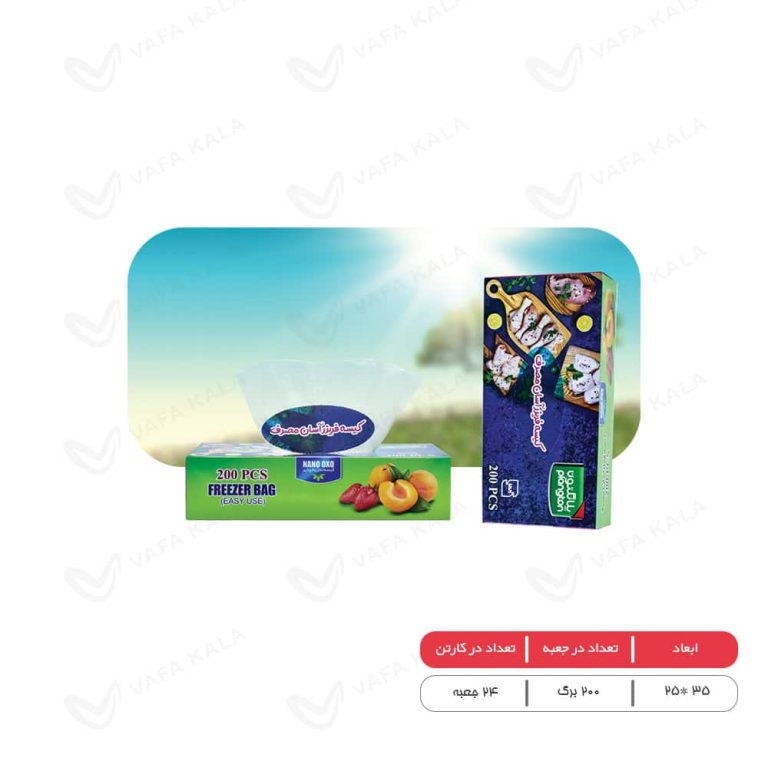 - کیسه فریزر: این کیسهها معمولاً به گونهای طراحی میشوند که نفوذ هوا و رطوبت را کاهش دهند و از خراب شدن مواد غذایی جلوگیری کنند. بسیاری از آنها قابلیت بسته شدن محکم دارند تا مواد غذایی در فریزر تازه بمانند.