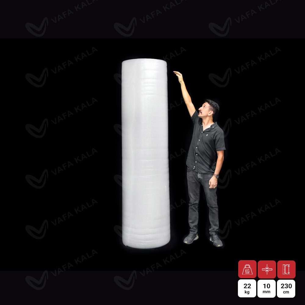 • عرض زیاد: نایلون حباب دار با عرض 230 سانتی‌متر امکان بسته‌بندی کالاهای بزرگ و حجیم را فراهم می‌کند.